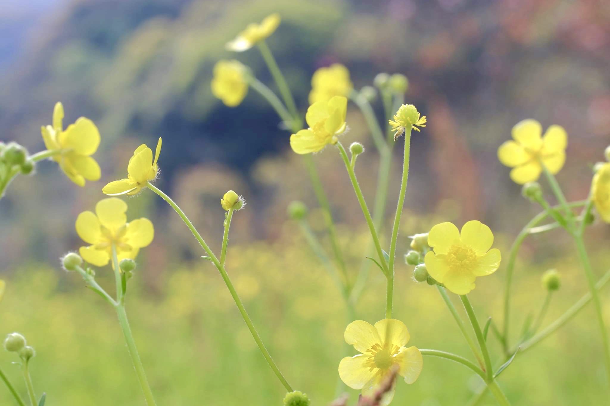 ユラユラ揺れるキンポウゲ。キンポウゲの花言葉「楽しみ到来」「上機嫌」。ほんと、楽しげにスィングしてる。可愛いから2枚アップ😊