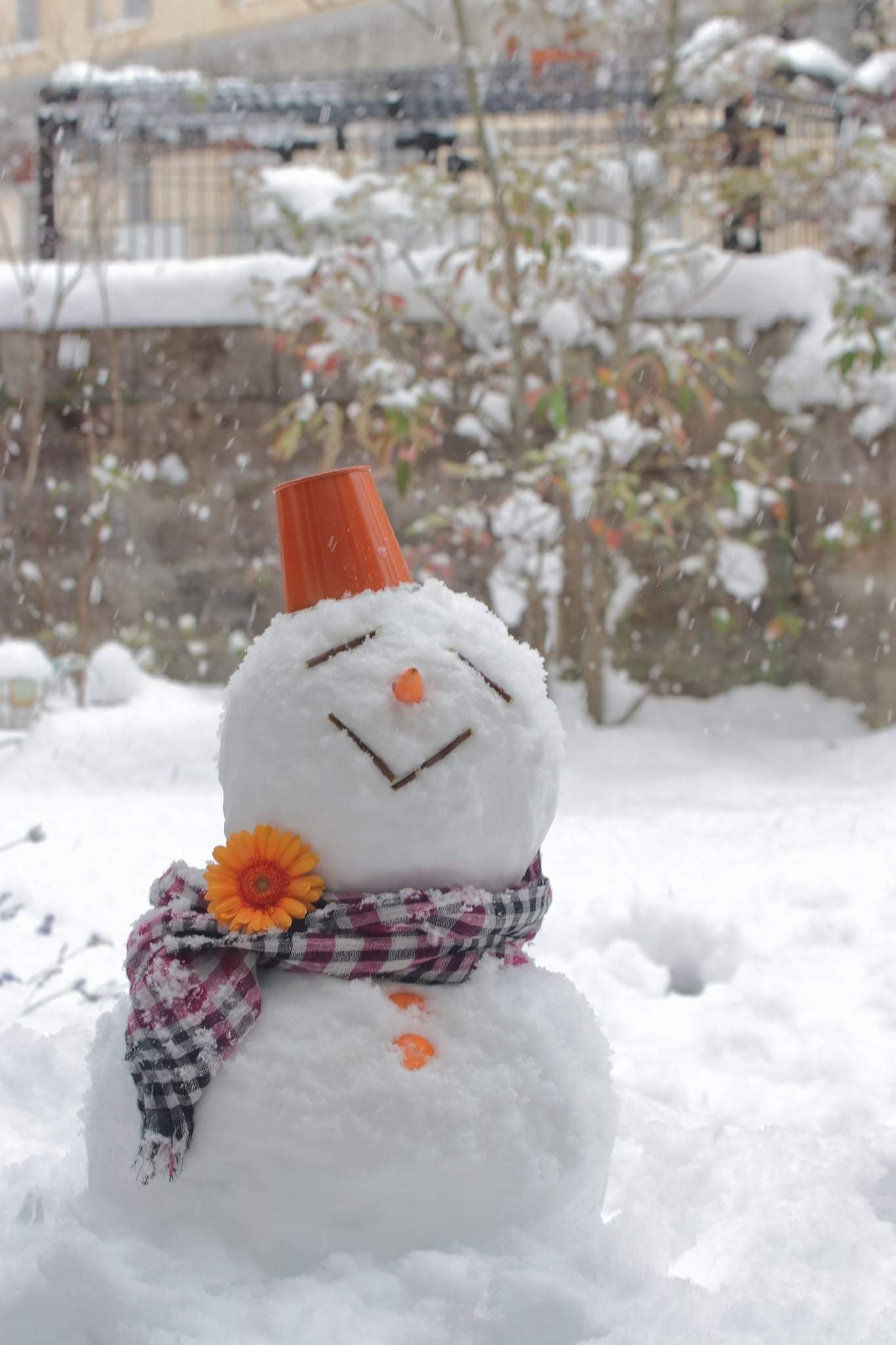 近所の子供達は雪だるまを作ったり、雪投げをして遊んでる〜。